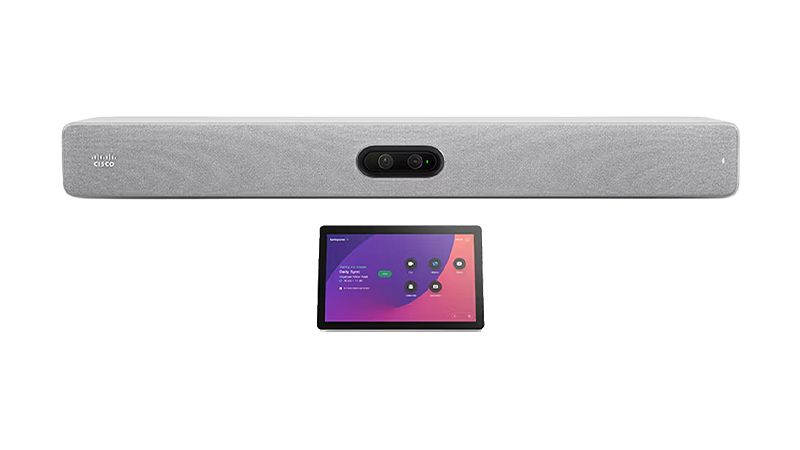 The Cisco Room Bar Pro is an all in one, AI-enhanced video conferencing bar designed to deliver intelligent and inclusive collaboration experiences in medium sized meeting spaces.